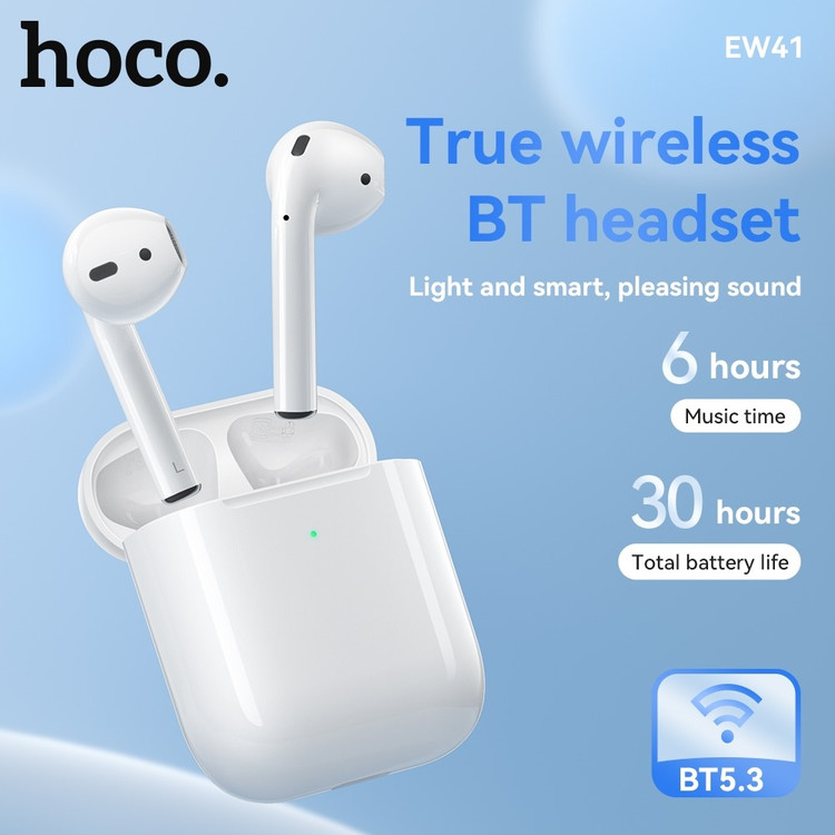 Hoco EW41 دارای باتری با ظرفیت مناسب است که اجازه میدهد تا حدود 6 ساعت موسیقی پخش کنید 🎶⏳ و حدود 4 ساعت مکالمه داشته باشید 📞.