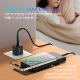 یکی از نقاط قوت برجسته این پاوربانک، پشتیبانی از فناوری شارژ سریع QC 3.0 و Power Delivery است 🚀. توان خروجی این دستگاه تا 22.5 وات میرسد که امکان شارژ سریع دستگاههای سازگار را فراهم میکند. همچنین پد شارژ بیسیم مغناطیسی با توانهای 5، 7.5، 10 و 15 وات، به کاربران این امکان را میدهد که دستگاههای مجهز به فناوری وایرلس را بدون استفاده از کابل شارژ کنند 📡.