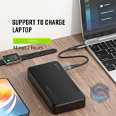 یکی از ویژگیهای برجسته این پاوربانک، پشتیبانی از فناوری شارژ سریع PD 3.0 و QC 3.0 است 🚀. توان خروجی این دستگاه از طریق پورت Type-C تا 65 وات میرسد که امکان شارژ سریع دستگاههای پرمصرف، از جمله لپتاپهای سبک و گوشیهای هوشمند، را فراهم میکند. این ویژگی برای کاربران حرفهای بسیار کاربردی است و زمان شارژ را بهطور قابلتوجهی کاهش میدهد.