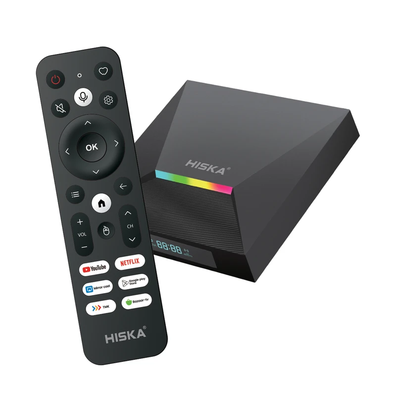 اندروید باکس Hiska A12 با سیستمعامل Android TV 12، رابط کاربری روان و امکانات متنوعی برای سرگرمی خانگی ارائه میدهد. پشتیبانی از کیفیت 4K UHD باعث میشود تصاویر شفاف و واضح باشند. حافظه داخلی ۱۶ گیگابایت و رم ۲ گیگابایت برای استفاده روزمره مناسب است، اما برای اجرای بازیهای سنگین یا ذخیرهسازی زیاد محدودیت دارد.