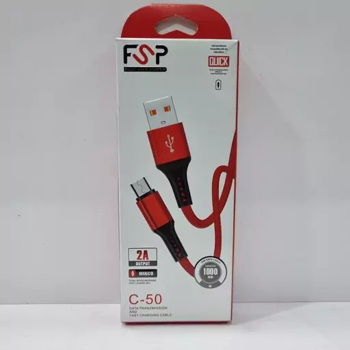 کابل شارژ و انتقال داده FSP مدل C-50 Micro USB – ۲ آمپر – کنفی (طول ۱ متر)